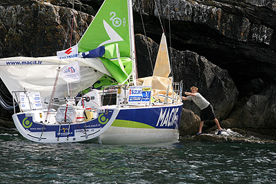 ![]() skipper Macif 2010 sur les rochers du goulet |